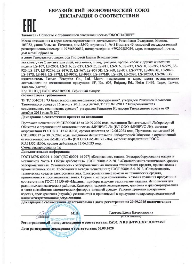 С помощью современного устройства «Экоснайпер LS-989» можно навсегда избавиться от неприятного соседства с грызунами, клопами и т.д. Отпугиватель изгонит из жилых и нежилых комнат всех вредителей, не причинив дискомфорта человеку.